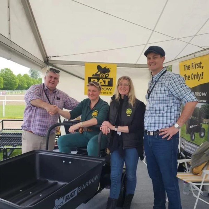 The World's FIRST Ride On Wheelbarrow - R A T stands for Ride on, Articulated, Tipping Barrow. Its patent applied design is a world first giving the user a safe and stable ride with incredible maneuverability, with loads up to 200kg.