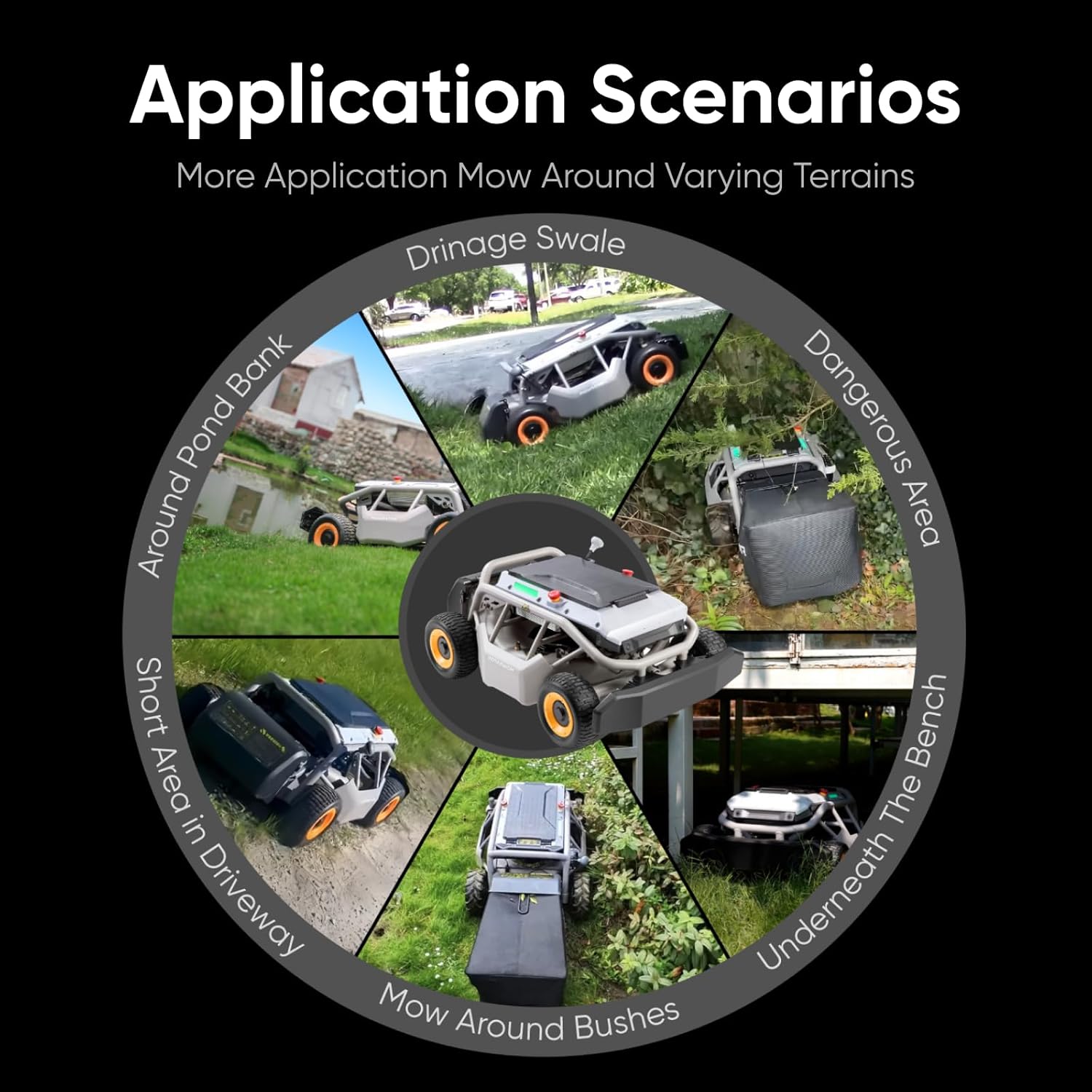 • 【Smart Terrain Recognition with Dynamic Adjustment】 — Designed with dual-wheel drive and dual-motor integration, this Mowrator RC mower reliably navigates large-area flat terrain. It smoothly powers through dense, and wet grass without clogging for comprehensive lawn coverage.