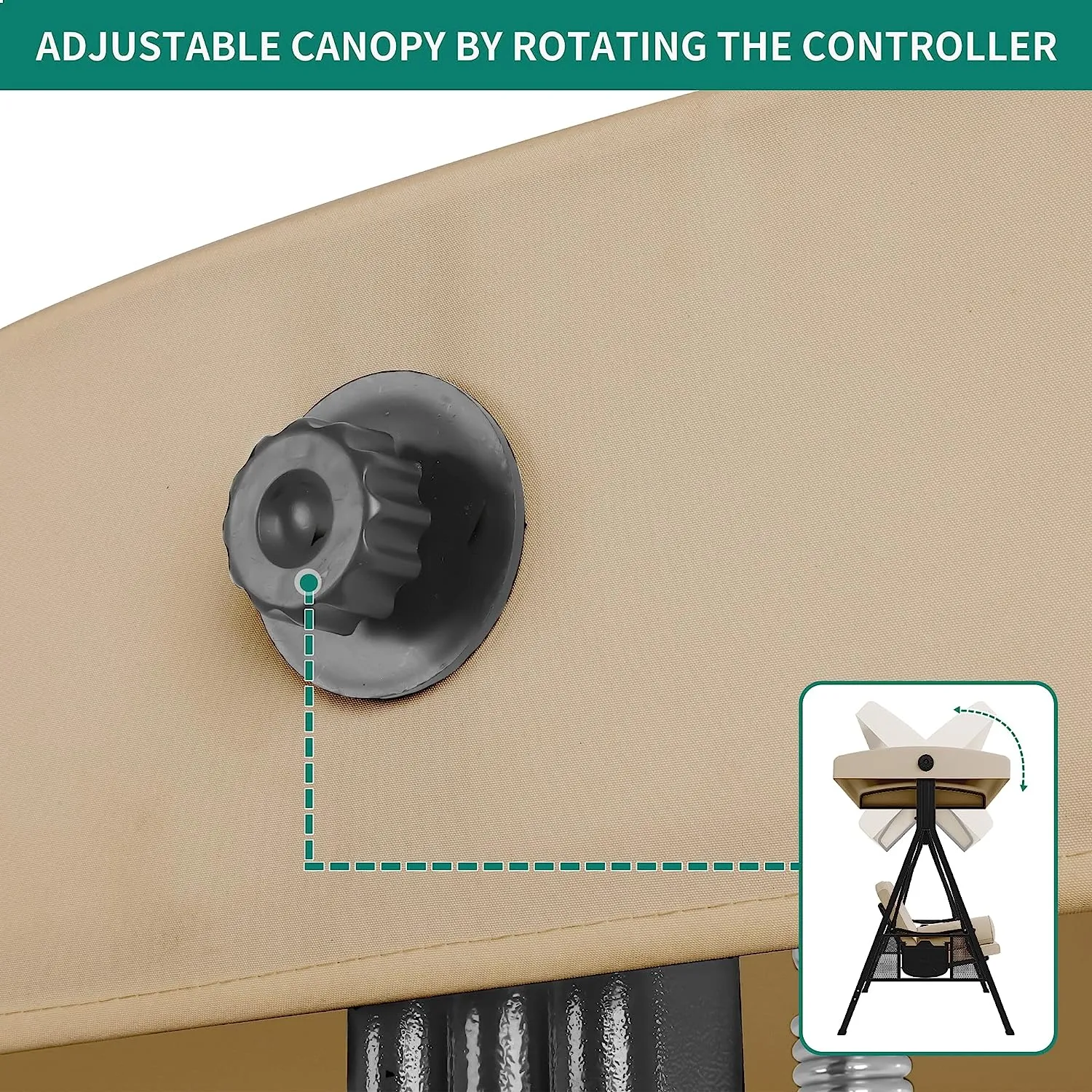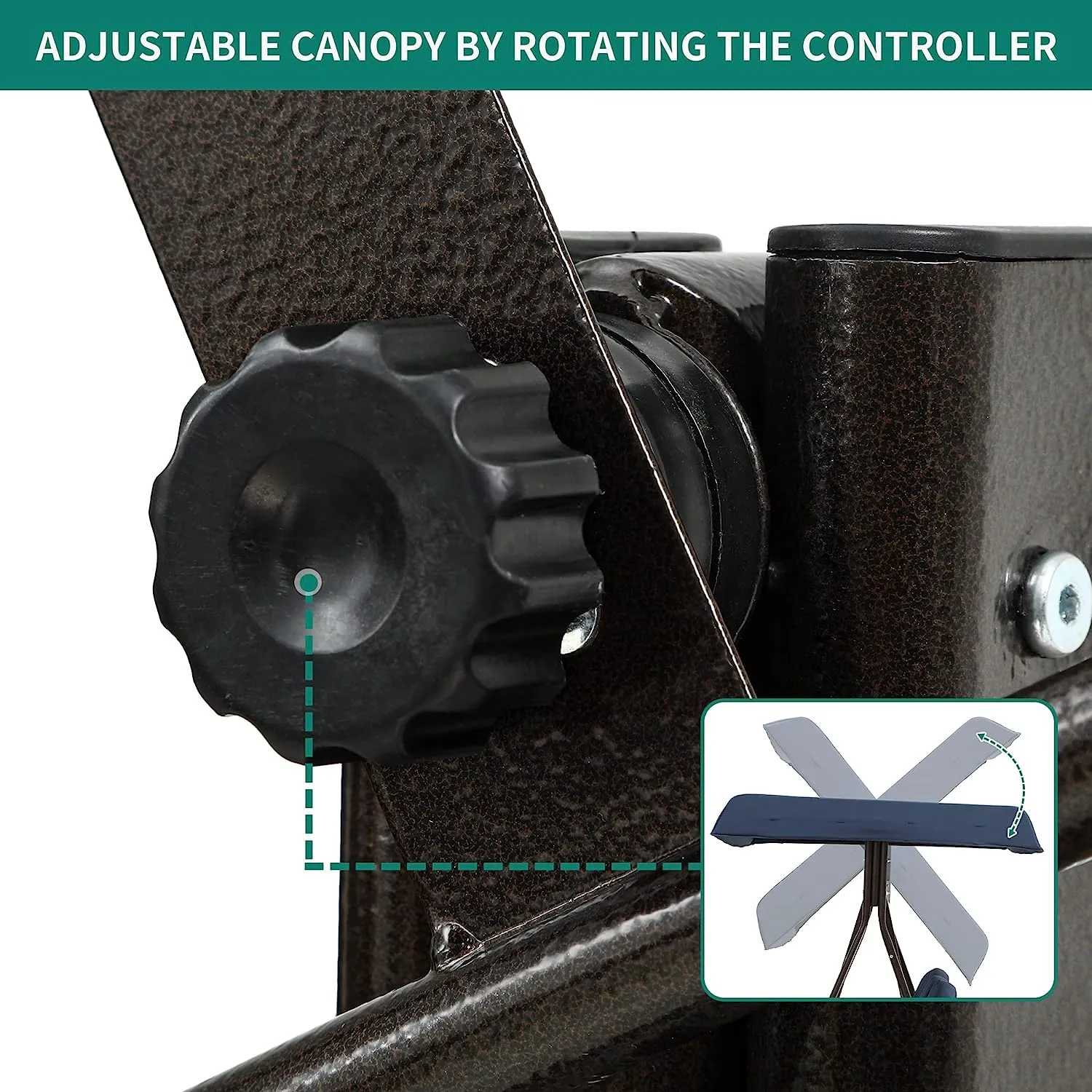 • ADJUSTABLE CANOPY: The canopy can be rotated to any angle through the knob for optimal shade coverage and block the sun all day long